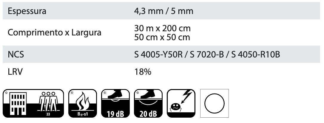 Flotex Pinstripe ié disponível nos formato em manta ou placas.